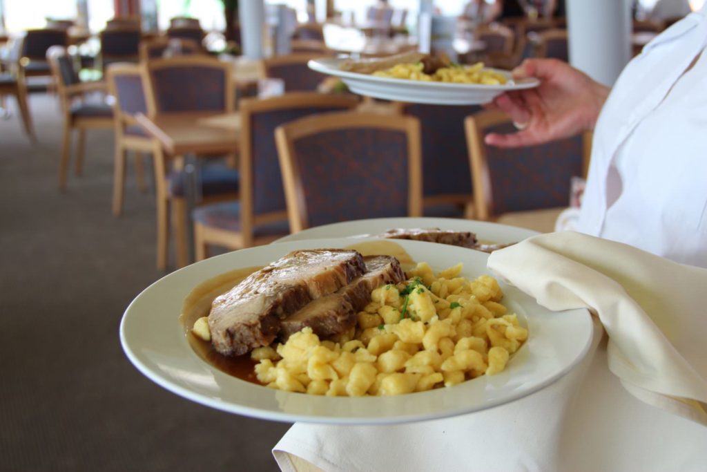 Seeluft macht hungrig und durstig? Stimmt – darauf ist unsere Crew bestens vorbereitet. Verwandeln Sie den Tag mit einem leckeren, unvergesslichen Frühstück unter freiem Himmel in einen Urlaubstag. Genießen Sie auf unseren weitläufigen Decks Seeluft und die grandiose Aussicht über den Brombachsee bei z. B. regionalen Bieren oder Kaffeespezialitäten. Gern mixen wir bei Abendveranstaltungen an der Cocktailbar einen der beliebtesten Drinks wie z. B. Pina Colada oder Caipirinha – mit garantiertem Urlaubsfeeling. Oder lassen Sie sich verführen von unserem umfangreichen Torten- und Kuchenangebot, das täglich frisch von unserem Bäcker geliefert wird. Mögen Sie lieber eine kleine Abkühlung? Die Eisbecher werden mit viel Liebe zubereitet und sind ein wahrer Genuss. Auch wenn Sie der große Hunger überkommt, haben wir an unserer Selbstbedienungstheke im Tagesgeschäft eine umfangreiche Auswahl an Snacks und Speisen. Beim Sonn- und Feiertagsbrunch und zahlreichen Veranstaltungen mit Buffet oder Menü laden wir Sie zum Schlemmen ein. Unser Küchenchef Erik Wittmann, der bereits auf Seeschiffen „auf großer Fahrt“ war, sorgt, Ihrem Anlass entsprechend, für die richtige Auswahl der leckersten Speisen.